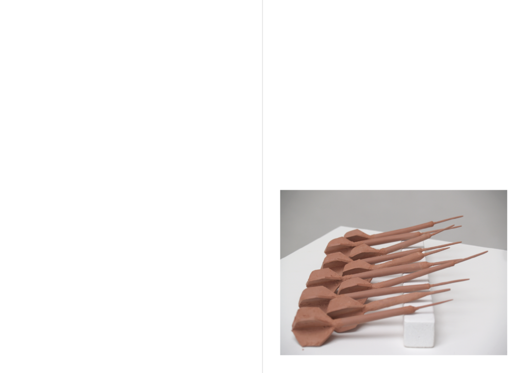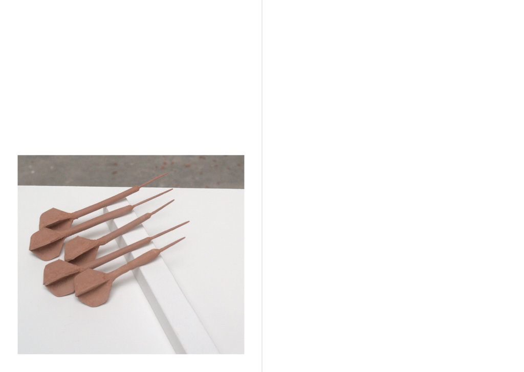 Neste ‘faz de conta’ do jogo dos dardos, as flechas são feitas de terra, mas a intenção nunca fora a de esculpir estatuetas mas, atirá-las uma a uma contra a parede reproduzindo o jogo dos dardos.