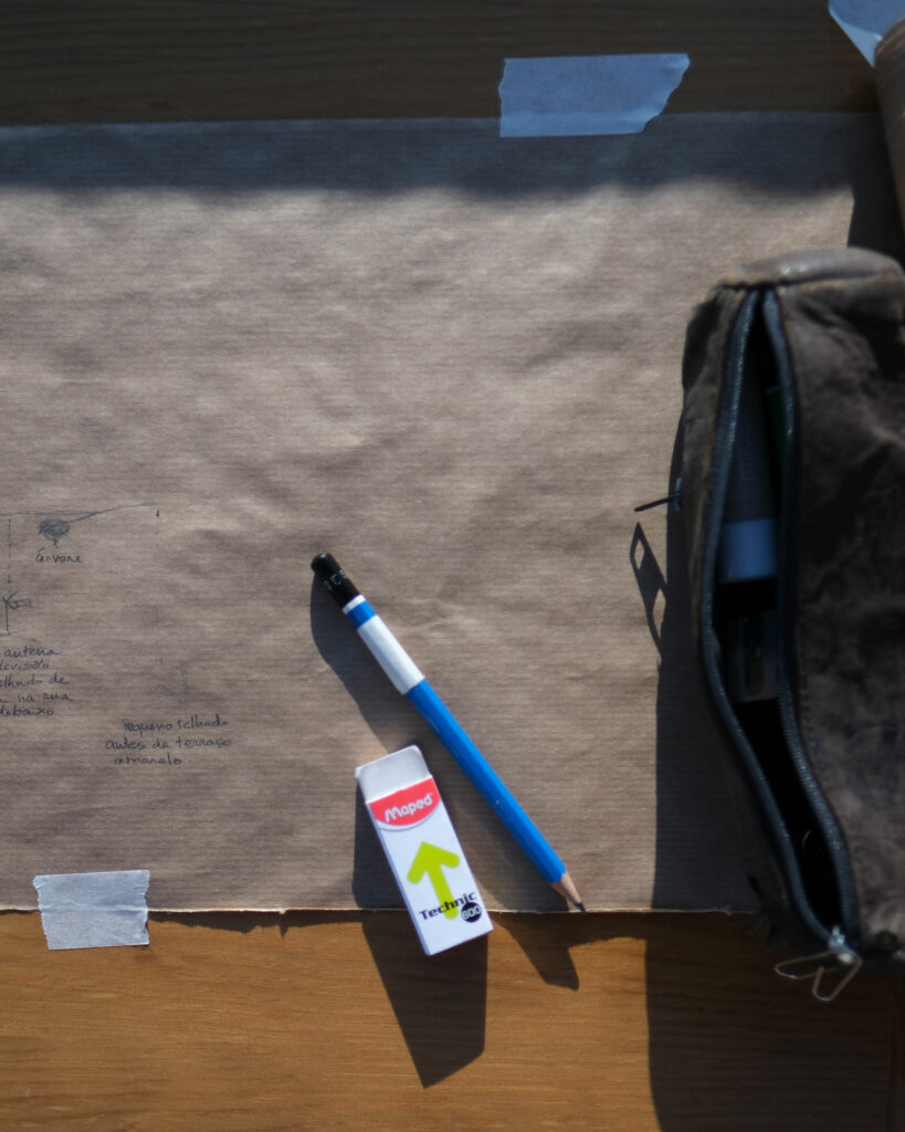 Resultado de uma ação, que consistiu em mapear a paisagem vista do miradoro usando uma técnica de desenho académico chamada sight-size, ou comparação direta.